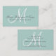 Mint Green Grey Simple Plain Monogram Business Card