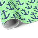 Mint Green, Navy Blue Anchors Pattern Wrapping Paper