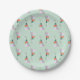Celebrate your child's birthday with these kids party plates featuring a pattern of cute party hat illustrations on a mint green background for a woodland theme.
