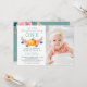 Mint Green Pink Floral Pumpkin 1st Birthday Photo Invitation