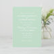 Plain white envelopes are included with paper invitations and will come to fit the invitation size you select. If you don’t need the envelopes, you may choose to not receive them by selecting the dropdown below "Envelopes" and choosing "None." If you’d like to have a design on your envelopes, you can browse all of these available envelopes to find the design that complements your Mint Green Plain Simple Wedding Invitation.