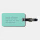 This luggage tag features your monogram in teal green, and your last name in white written across the top of the monogram. The monogram and text are placed on a mint green banner which is lined in white. The background is a pretty matching mint and white quatrefoil pattern. The back of the tag is matching mint green, with your customized text in teal. Distinctive, and personalized just for you!