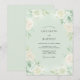 Delicate blossoms in creamy white and soft mint green adorn a pale green backdrop, creating an ethereal and romantic atmosphere. This design evokes a gentle, airy feel, perfect for a springtime or romantic occasion.