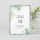 The modern botanical wedding Table Numbers invitations feature mixed watercolor greenery foliage and rustic eucalyptus olive leaves paired with a classy mint green frame. This design is ideal for a trendy and stylish party event. Customize this design with your own message and personalized information. All designs are printed.