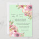 Mint Green Rustic Pink Flowers Wedding Invitations