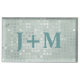 Lovely wedding reception table card holder done in a mint green sequin look. A two letter teal monogram is ready to personalize with the bride and groom's initials. Great for weddings and other special occasions.