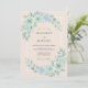 This design features a serene palette of mint green, dusty blue, and soft peach tones. Delicate watercolor roses and hydrangeas create a romantic atmosphere perfect for an ethereal event. Lush leafy foliage provides a botanical touch that evokes the freshness of a springtime meadow. The watercolor textures offer a graceful and sophisticated aesthetic for a timeless event.