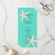 Tall, beach themed wedding program template paper in mint green with large starfish, or sea stars. Use both sides to personalize for the marriage ceremony. Printed on flyer paper, this is a cheap way to have pretty programs for your wedding ceremony.
