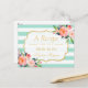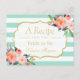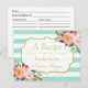 Mint Green Stripes Floral Bridal Shower Recipe Postcard