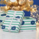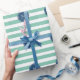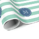 Mint Green Stripes Pattern, Navy Blue Monogram Wrapping Paper