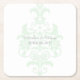 Stylish with chic elegance describes these sophisticated Subtle Damask Wedding Paper Coasters with a light mint green damask flourish background. These classic coasters are perfect for a traditional wedding and can be easily customized with your wedding details. For more customization options, click on the Customize It button.