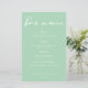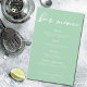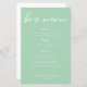 This soft mint green wedding bar menu features chic white typography for a sweet spring outdoor ceremony. Simple and elegant script on tranquil solid pastel green menus for a garden reception.