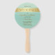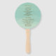 Simple, elegant, mint green wedding program hand fans with gold foil details and modern script.