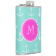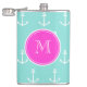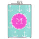 Mint Green White Anchors, Hot Pink Monogram Hip Flask