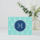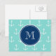 Mint Green White Anchors, Navy Blue Monogram Postcard