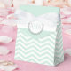 Mint green, white chevron zigzag pattern wedding favor box with initials and monogram, featuring a chevron or zigzag pattern and a soild mint green color on the upper with a white stripe and a grey branch wreath frame. This trendy and cute girly monogrammed favor box is perfect for other special occasions too such as bridal showers, birthday parties, baby showers etc.