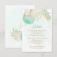 Romantic mint green & white flowers with gold leaves wedding details enclosure card.