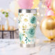 Mint Green White Gold Rose Floral Insulated Tumbler