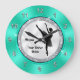 Oh so Pretty Mint Green, White and Silver Personalized Ballerina Clock or for COLOR, Design or Product CHANGES, Call Designer Linda: 239-949-9090 Free custom designing service on your choice of thousands of products for the prettiest ballerina themed bedroom for girls and ladies. The Black Ballerina Silhouette COLORS can be changed to any color combinations, along with the white background, silver glitter look design and mint green printed ballerina clock frame.