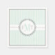 Mint green, white striped pattern wedding paper napkin with initial and monogram, featuring a pattern with mint green and white stripes, a white stripe along the napkin and a dotted line over it and your initials and monogram in a frame with a grey branch wreath. There is a grey border around it. This trendy and cute girly monogrammed paper napkin is perfect for other special occasions too such as bridal showers, birthday parties, baby showers, engagement, reception, anniversary party etc.