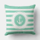 Mint-Green & White Stripes Nautical Anchor Throw Pillow