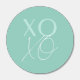 Cute Valentine's Day Hershey kisses featuring "XOXO" in light mint and white lettering with a mint green background color. The custom Hershey kisses are perfect for classroom Valentine's parties.
