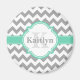 A stylish modern grey chevron zigzag pattern with an elegant, bright mint green and white quatrefoil nameplate featuring a customizable name and custom monogram. This cool, geometric, fashionable, popular zig zag pattern and personalized name / monogrammed nameplate will make a thoughtful gift for a girly girl that loves chic classy patterns with a pop of color.