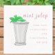 Add a charming Southern-inspired touch to your cocktail party with this preppy mint julep recipe cocktail napkin. Featuring a classic mint julep served in a silver cup with fresh mint leaves, this design pairs elegant illustration with playful typography. The recipe is displayed in a bright pink, fun font, while “Mint Julep” appears in stylish script for a polished, party-ready look. Perfect for derby-style celebrations, garden parties, bridal showers, and cocktail hours where details matter.. This mint julep design can be found on more items in my shop, PageCreativeDesigns.