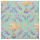 Round, smiling goldfish and tiny purple swimmers float in a mint “sea garden” of folk-style flowers, hearts, and sprigs. Soft, texture adds a sweet, storybook charm that suits nurseries, kids’ rooms, and mermaid-party themes. Where available, adjust scale or repeat to fit quilts, bows, or décor. A cheerful palette of mint, sunshine yellow, lilac, and coral keeps it playful and fresh.
