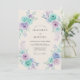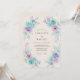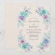 This design features a delicate arrangement of watercolor roses in refreshing shades of mint green and soft lavender. Lush foliage in muted teal and purple hues creates an airy, romantic atmosphere against a warm ivory backdrop. The hand-painted aesthetic captures a whimsical feel, perfect for a sophisticated yet ethereal event. Each blossom is rendered with gentle washes of color to evoke a sense of timeless elegance.