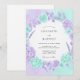 This floral artwork showcases a soft watercolor palette of mint green and lavender. A lush arrangement of roses, lavender sprigs, and hydrangea blossoms creates a dreamy atmosphere. The wash of pastel tones and delicate petals evoke an ethereal and romantic feel for a seasonal springtime event.