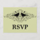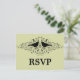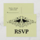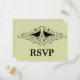 Sweet and simple Love Bird Swirls Wedding Response Postcard featuring silhouettes of a pair of whimsical birds and cascades of elegant swirl flourishes on a mint green background. This modern RSVP postcard is easy to customize with your wedding details. Click on "Customize It" to find more personalization options.