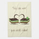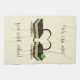Kitchen Towel with two, mint, Nanaimo bars smiling at each other in front of a heart. The words “We are mint for each other!” are set above and below the illustration. The words can be customized.