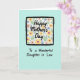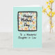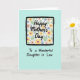 Designed with a calm, fresh look, this greeting card features a large pale mint-green background that feels airy and gentle 🌼. In the middle sits a tall rectangular panel outlined with a loose black sketch-like border, giving it a cozy, friendly touch. Inside the panel, scattered flowers and leaves create a soft garden scene in sunny yellow, blush pink, and light blue, with leafy greens tucked between petals. Across the floral panel, the main message “Happy Mother’s Day” appears in dark lettering that stands out clearly against the pastel blooms ❤️. Beneath the panel, a smaller line of text reads “To a Wonderful Daughter in Law,” centered and printed in a simple dark font for an affectionate, family-focused note. The spacing between the two lines of text leaves breathing room, like a quiet pause that lets the caring words land. The flowers vary in size and shape, with rounded petals, small dot details, and leafy sprigs filling the panel from top to bottom. The black border around the central panel looks slightly uneven, as if drawn by pen, framing the pastel bouquet neatly.