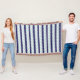 Mint, Navy Blue, White Geometric Striped Pattern Throw Blanket