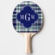 Mint Navy White Preppy Madras Quatrefoil Monogram Ping Pong Paddle