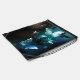 Mint night glowing butterflies on black abstract background.