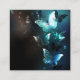 Mint night glowing butterflies on black abstract background.