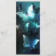 Mint night glowing butterflies on black abstract background.