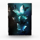 Mint night glowing butterflies on black abstract background.