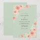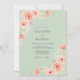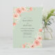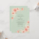 This design features a soft mint green background adorned with delicate watercolor florals. Soft peach roses and lush greenery create a romantic and airy atmosphere for a seasonal event. Graceful botanical clusters highlight a palette of pastel pinks and verdant hues. It captures a whimsical aesthetic for a timeless marriage ceremony.