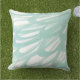 Pillow printed with original modern abstract acrylic watercolor painting in soft mint green and white.