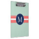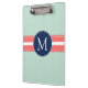 Mint Polka Dot Pattern Coral Navy Blue Monogram Clipboard