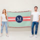 Mint Polka Dot Pattern Coral Navy Blue Monogram Throw Blanket