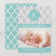 Mint Quatrefoil Monogram Birth Announcements