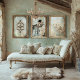 Mint Sage Green Abstract Cherry Blossoms Art Decoupage Tissue Paper.