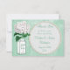 Elegant mint green and white thank you wedding flat cards, for newly weds to send to their wedding guests, with a cute green and white glass Ball mason jar and white hydrangea vintage flower illustration on a stylish antique shabby chic collage with beautiful white ornate decorations, a dragonfly, and faded writing on a stylish mint green harlequin pattern background. On the reverse of the invites is a glamorous printed white pearls and lace mat with text for you to personalize with your event details. Classy, trendy, fashionable modern girly invites. All of the text can be easily customized to meet your needs and you can change the font style, color and size of font if you desire. I have matching wedding products in my store. If you need any assistance customizing your product please contact me through my store and I will be happy to help. Pearl mat by ©Hazel Kinvig-Paul www.design-a-dream.co.