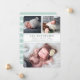 Announce your sweet baby's arrival with our photo collage birth announcements featuring elegant gray lettering and pastel mint green details. Flat cards feature three of your favorite newborn photos -- two at the top, and one at the bottom -- with baby's name, birth stats and family names in chic charcoal gray, framed by two thin bands of mint green. Cards reverse to mint and white stripes.