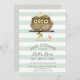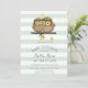 Mint Stripes Grey Owl Baby Shower Invitations