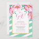 Mint Stripes Pink Watercolor Floral Baby Shower Invitation